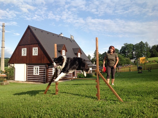 Vloni jsme zkoušeli agility, ale nějak jsme to vzdali. Doma na zahradě máme tunel, slalom a skočku a k vyblbnutí nás obou to dokonale stačí....Zaměřili jsme se hlavně na obedienci a doufám, že nám to vydrží a někam to dotáhneme :-).... Máme super trenérky, tak to by v tom byl čert, aby alespoň základní zkoušky nedopadly. No a dále Eggi miluje vodu, míčky všeho druhu, frisbee, honění stínů - to je novinka asi tak dva týdny - a různé kravinky....blbosti nám jdou vážně dokonale....otočky, sudy, skoky...prostě si vyhrajeme...
